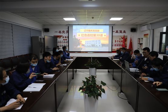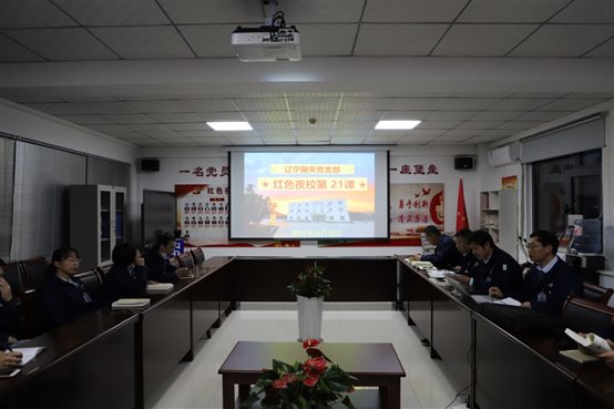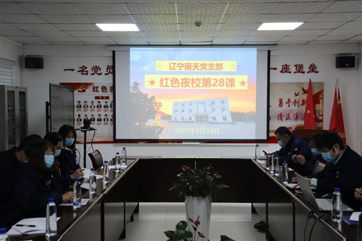 •   11月28日,辽宁丽天党支部开展“红色夜校”第62课,总经理室成员、各部门中层、党员、入党积极分子及部分群众参加此次学习。会议由支部书记陆敏山同志主持,本次会议共四项议程。    一、落实“第一议题”内容。  陆书记传达习总...