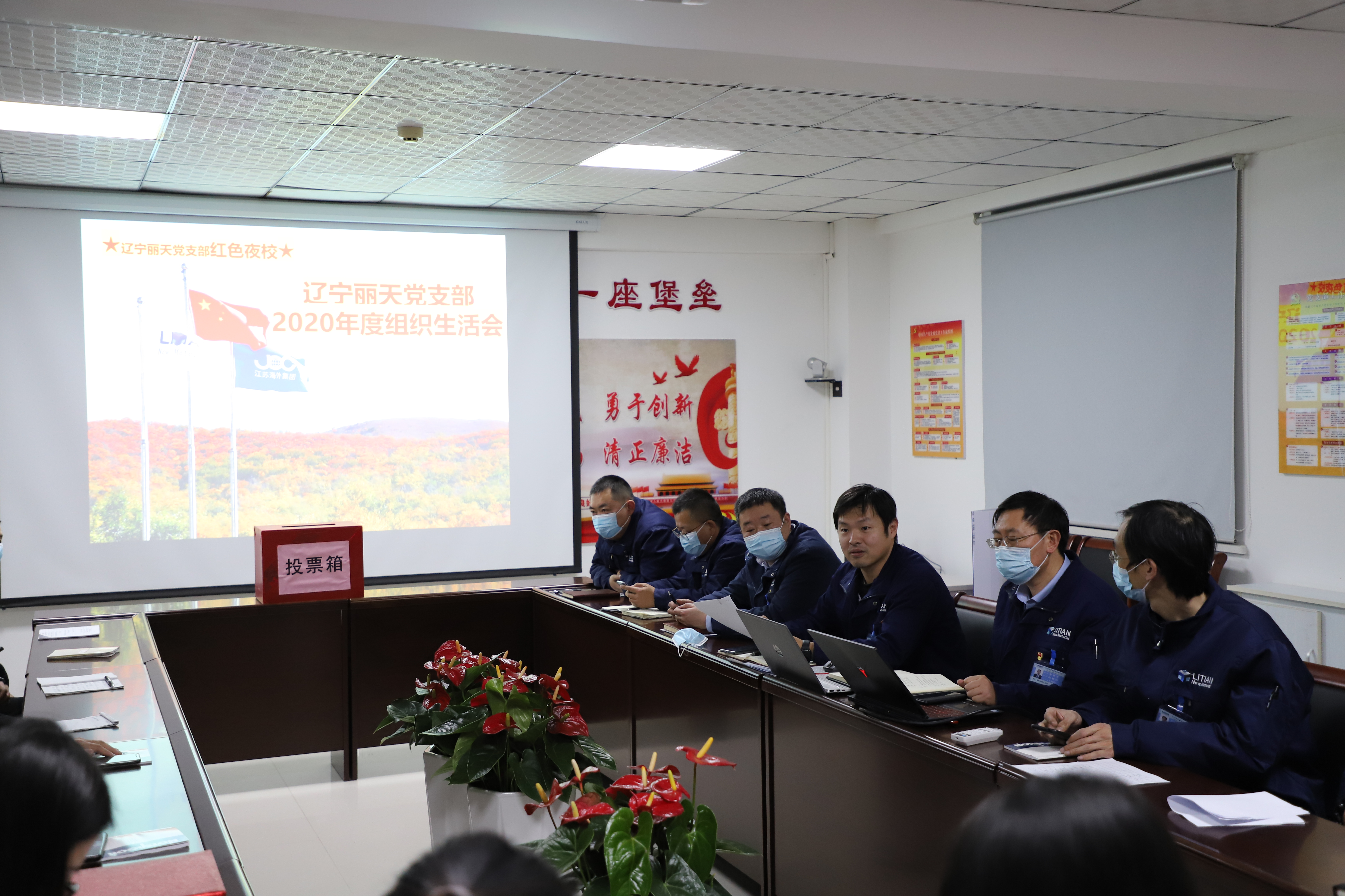 •     10月24日,辽宁丽天党支部开展“红色夜校”第61课,总经理室成员、各部门中层、党员、入党积极分子及部分群众参加此次学习。会议由支部书记陆敏山同志主持,本次会议共五项议程。    一、落实“第一议题”内容。  陆书记传达习...