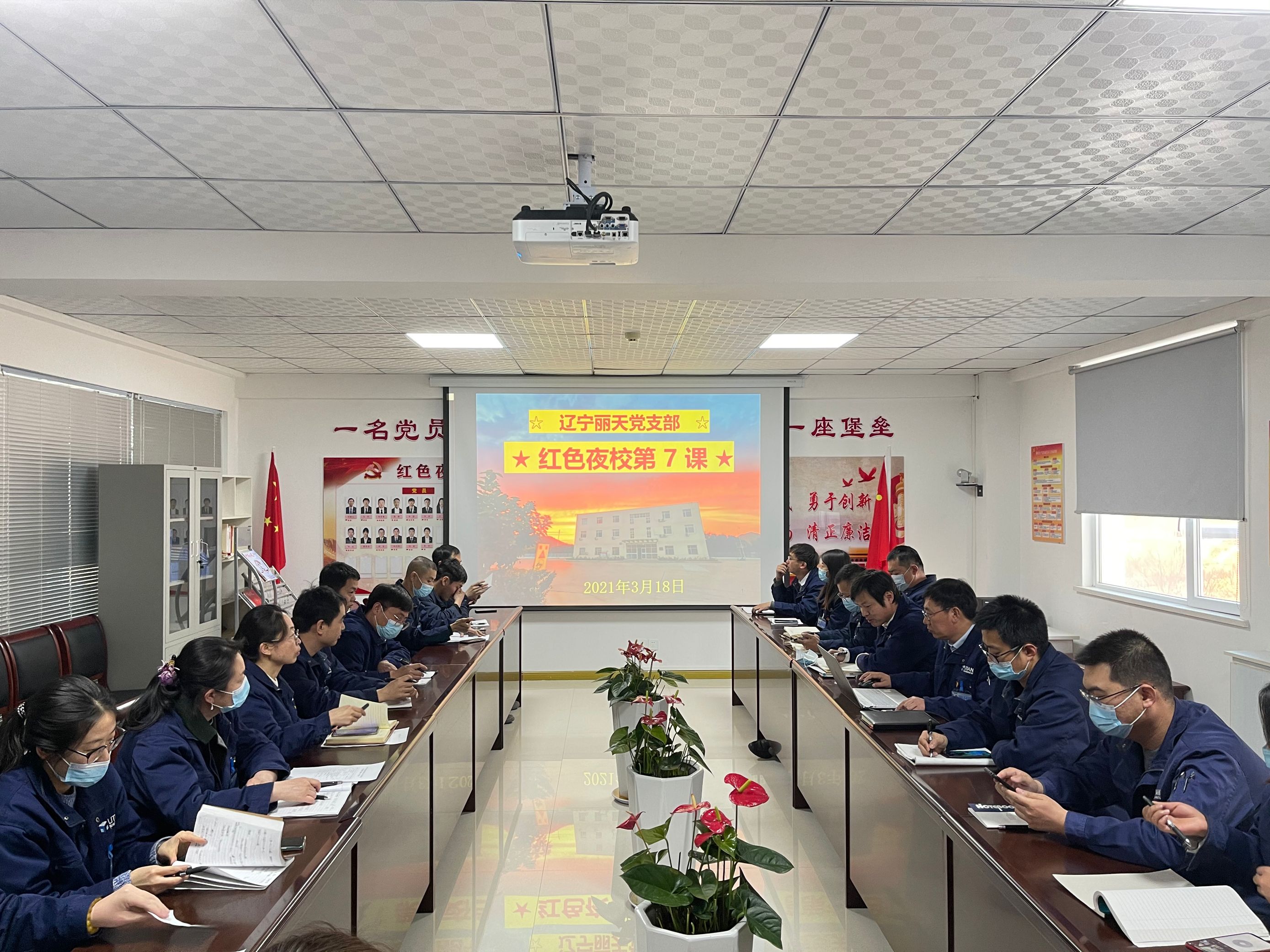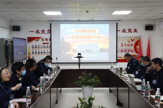 •   3月18日晚,辽宁丽天党支部开展了“红色夜校”第7课,党员、入党积极分子、总经理室成员、各部门中层及部分群众参加此次学习。  本次课堂共安排三项内容,第一项内容由支部书记陆敏山同志传达集团相关文件精神,他首先传达海...