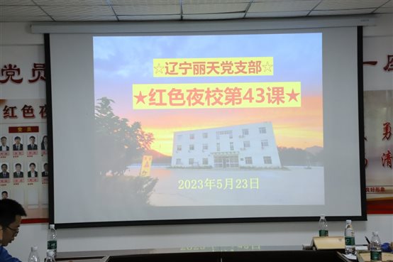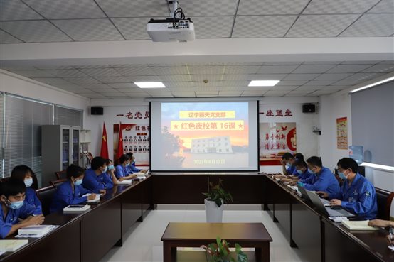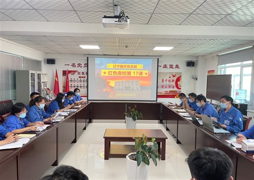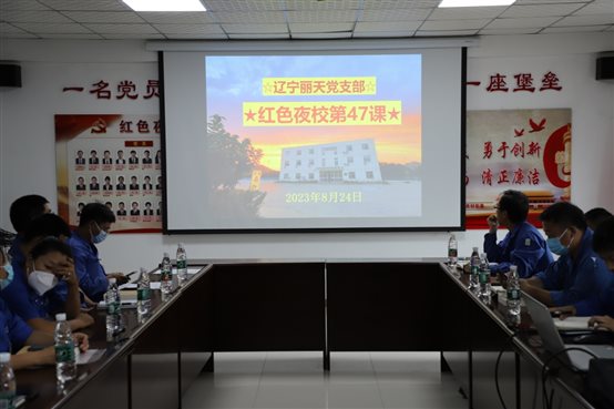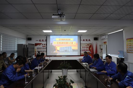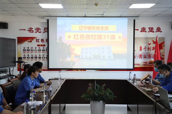 •      7月末,辽宁丽天党支部开展“红色夜校”第58课,总经理室成员、各部门中层、党员、入党积极分子及部分群众参加此次学习。会议由支部书记陆敏山同志主持,本次会议共四项议程。        一、落实“第一议题”内容。  陆书记传达...
