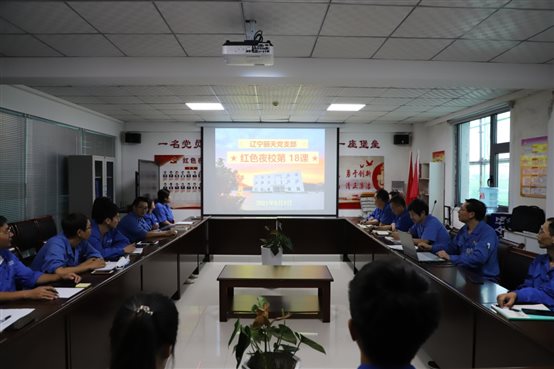 •     8月26日晚,辽宁丽天党支部开展了“红色夜校”第17课,党员、入党积极分子、总经理室成员、各部门中层及部分群众参加此次学习。  课堂开始由党支部书记陆敏山同志传达落实集团党委相关文件精神。陆书记首先对《关于印发202...