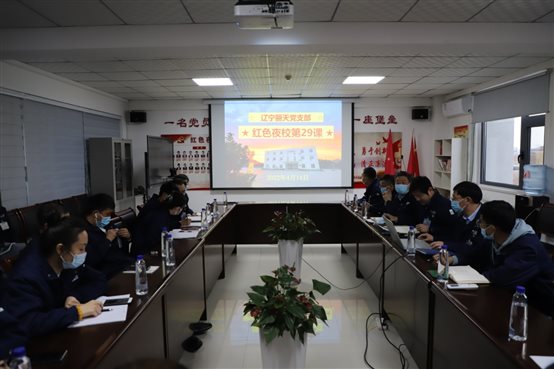 •      2月末,辽宁丽天党支部开展“红色夜校”第53课,党员、入党积极分子、总经理室成员、各部门中层及部分群众参加此次学习。会议由支部书记陆敏山同志主持,本次会议共四项议程。    一、落实“第一议题”内容。  陆书记传达习总...
