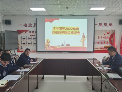 •         2021年11月11日下午,辽宁丽天“两在两同”建新功活动第一小组开展群众座谈会,公司支部书记、董事长陆敏山作为第一小组的组长,组织第一小组联系点——物流部的全体员工,并邀请了销售部和生产部的部分代表在党员活...