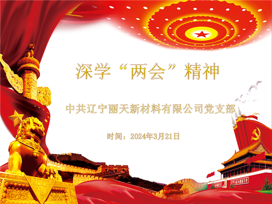 •     3月21日,辽宁丽天党支部召开专题学习2024年全国“两会”精神的会议。会议主要学习政府工作报告、习总书记参加十四届全国人大二次会议江苏代表团审议时的重要讲话等内容。党支部书记陆敏山主持会议并讲话,党员、预备党...