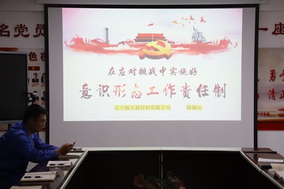•        9月23日,辽宁丽天党支部书记陆敏山同志讲授《学党史、悟思想,促进干部员工全方位提升  办实事、开新局,推动辽宁丽天高质量发展》专题党课,党员、入党积极分子、总经理室成员、各部门中层及部分群众参加此次学习。    ...