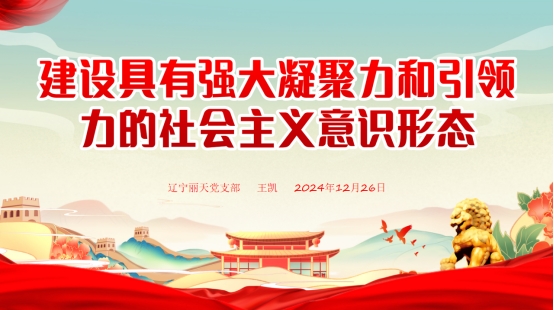 •   12月26日,辽宁丽天党支部召开意识形态工作研究专题会议,党支部副书记王凯同志讲授《建设具有强大凝聚力和引领力的社会主义意识形态》专题党课,同时对支部2024年度意识形态工作的落实和后续要求进行了总结。总经理室成...