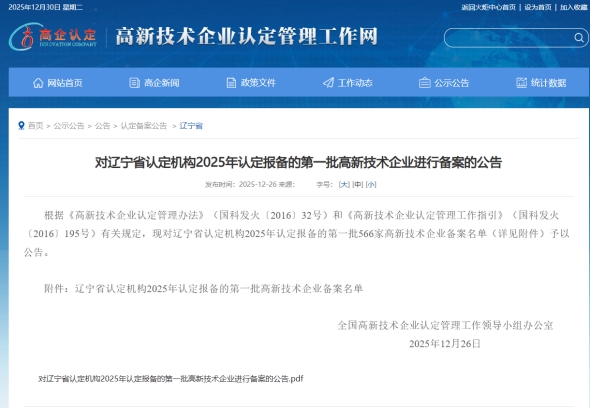 2025年12月26日,国家高新技术企业认定管理工作网发布公告,苏豪丽天(辽宁)高分子材料有限公司凭借过硬的科技创新实力与持续的发展潜力,成功再次通过国家高新技术企业复审认定,这是国家及行业对公司技术研发能...