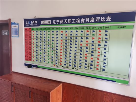 对于化工行业来说,倒班是常态化的事情,如果没有得到充足的休息,不仅容易让人精神不振,而且还会影响到员工们的正常工作。为进一步调动住宿员工自我约束、自我管理宿舍的积极性,创造良好的员工休息环境,建立标准化的管...