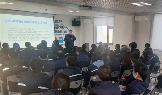为进一步调动全员参与双重预防机制建设的积极性、主动性和创造性,提升全员安全意识,纵深推进公司双重预控数字化系统建设,让各级人员掌握双预防建设的目标、内容、要求、方法等,提高全体员工的风险意识,不断提升企业安全管理水平,2022年12月30日,公司组织开展双重预防机制数字化建设专题培训,副总经理袁迎春主持培训,公司总经办及全体员工参加培训。