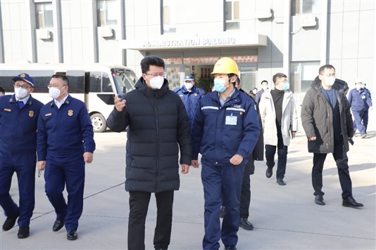 1月18日上午,葫芦岛市委副书记、市长何志勇带队,市委常委、秘书长周战杰,市政府副秘书长、办公室主任周佳楷,市应急管理局局长古剑波,市工信局局长韩凤廷,市生态环境局长封玉龙,市消防救援支队支队长郝永贵一行来我公司开展节前安全检查,经济开发区党工委书记、管委会主任王建华,高新区党工委副书记、管委会主任侯驰陪同检查。公司总经理王凯和各部门负责人全程陪同。
