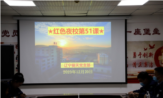 12月20日,辽宁丽天党支部开展“红色夜校”第51课,共有第一议题学习、传达集团会议精神、传达纪检监察信息动态第十一期、专题学习《中国式现代化面对面》、注安师讲课等五项内容。