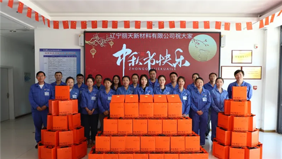 秋风送爽,丹桂飘香。在一年一度的中秋佳节来临之际,公司为每位员工准备了精美的月饼礼盒,并祝愿全体员工及家人们中秋节快乐!月饼不仅仅是一份节日礼物,更是对每一位员工辛勤努力送上的节日关怀。承载着辽宁丽天对大家的深深祝福,让在节日里依然坚守岗位的同仁们感受到家的温暖和节日的快乐。