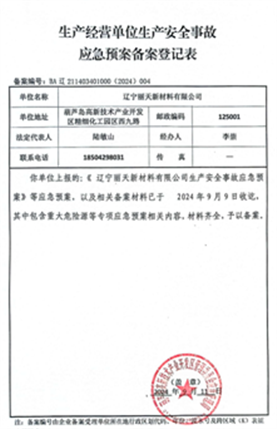本月,公司《生产安全事故应急预案》经专家评审、葫芦岛市高新园区应急管理局审核,正式完成备案。下一步,公司将常态化开展好应急演练,强化现场应急处置能力,畅通应急指挥链条,全面开展应急救援队伍队建设,切实提高公司应急处置能力。
