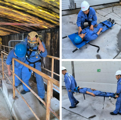 8月13日,水处理班组组织开展硫化氢中毒现场处置演练,本次演练模拟水处理班组一名当班人员在作业过程中,不慎接触硫化氢气体导致中毒昏迷的真实场景。演练现场,各应急救援小组分工明确、配合默契,从现场警戒、有毒气体检测,到佩戴防护装备施救、心肺复苏急救,再到伤员转运,全程严格遵照应急预案及操作规程推进,流程紧凑高效。此次演练提升了员工应对此类事故的协同处置能力,为守护公司员工生命健康筑牢了坚实防线。