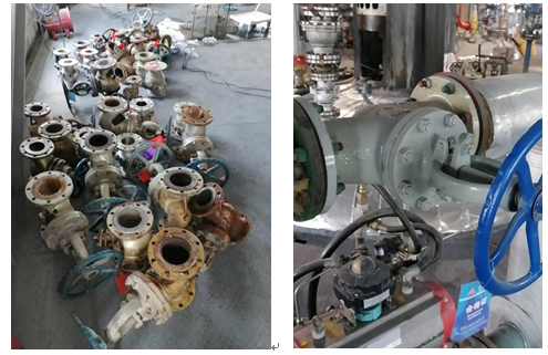9.反应工段在停工期间更换内漏和使用不良阀门,确保安全生产,杜绝生产事故