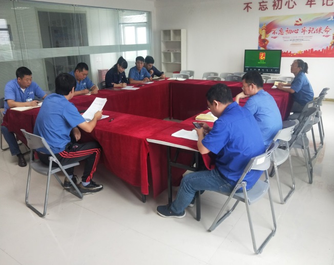 8月13日下午,辽宁丽天新材料有限公司党支部召开“不忘初心、牢记使命”主题教育中对照党章党规找差距、党史、新中国史等学习交流会议,全体党员参与会议。