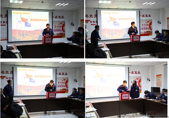 第三项内容为辽宁丽天支部召开接收侯俊、朱向阳、刘健和陈欢四名发展对象为预备党员的党员大会,秉持着“公平、公正、公开”的原则,严格按照各项程序执行,本次大会旨在吸纳公司内的优秀同志加入党组织,为支部将来的发展打下坚实的人才基础。首先由四名发展对象逐一宣读各自的入党志愿书,随后,各发展对象的入党介绍人就发展对象的有关情况分别向发表了自己的意见,接下来由在座的党员对发展对象进行讨论,表态是否同意接受他们作为预备党员加入丽天支部。对于入党介绍人和在场党员同志指出的不足之处,四名发展对象均表示会在接下来的考察期更加坚定自己的信念,改变仍有不足的工作方法和学习方式、态度,积极参加党内活动,全方位提升自己的政治素质。最后有表决权的党员对是否接受四名发展对象为预备党员进行无记名投票,经正规的投票、唱票、监票和计票环节,四名同志均是全票通过,成为了光荣的中国共产党预备党员。四位预备党员也为辽宁丽天党支部注入了新鲜的血液,相信在未来的日子里,每一名成员都能够严格要求自己,牢记党员光荣使命,在工作中充分发挥党员的先锋模范作用,争做支部的“优秀共产党员”。